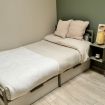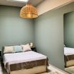 The flat consists of a living room with a kitchen, two double bedrooms, a bathroom and a small storage room. The kitchen is fully equipped with everything you need to prepare your meals. The living room is furnished with a double sofa bed and a flat-screen TV with Netflix and Prime Video. The bedrooms are equipped with a double bed, a wardrobe and a bedside table. The bathroom is complete with a shower, bidet and washing machine. The flat has free Wi-Fi, air conditioning and independent heating.